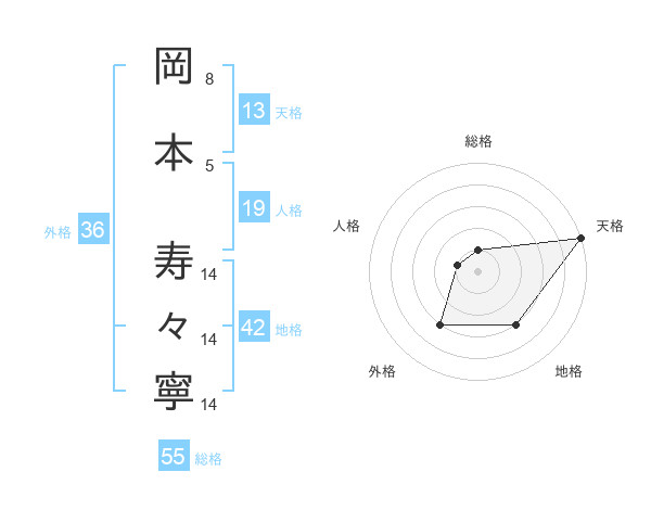 岡本 寿々寧さんの天格は13画の5点!