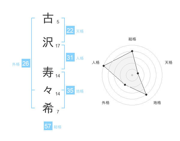 古沢 寿々希さんの総格は57画の4点!