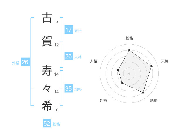 古賀 寿々希さんの総格は52画の4点!