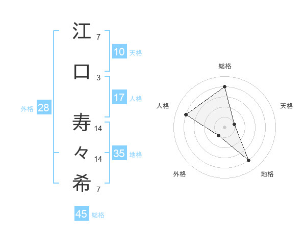 江口 寿々希さんを姓名の画数から五運を鑑定