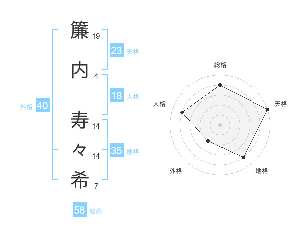 簾内 寿々希さんの総格は58画の4点!