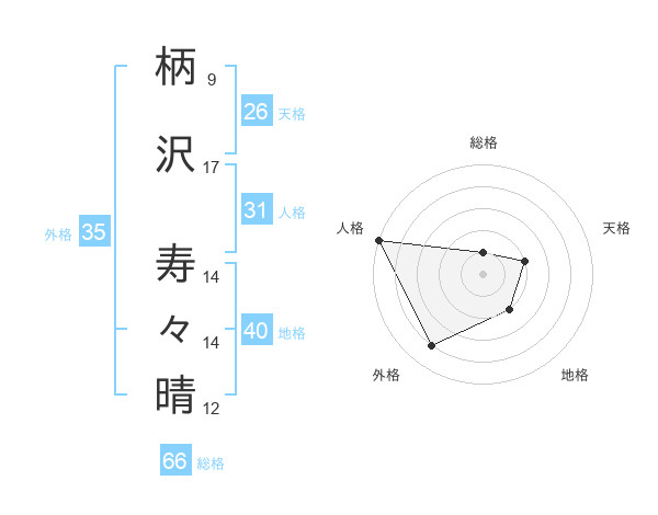 柄沢 寿々晴さんの総格は66画の1点!