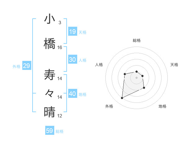 小橋 寿々晴さんを姓名の画数から五運を鑑定