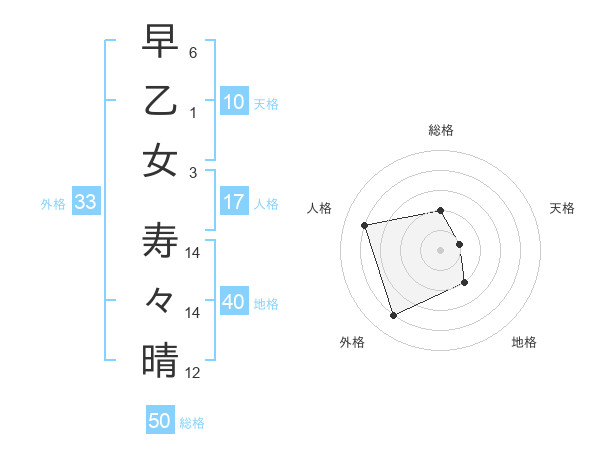 早乙女 寿々晴さんの総格は50画の2点!