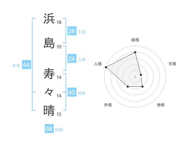 浜島 寿々晴さんを姓名の画数から五運を鑑定