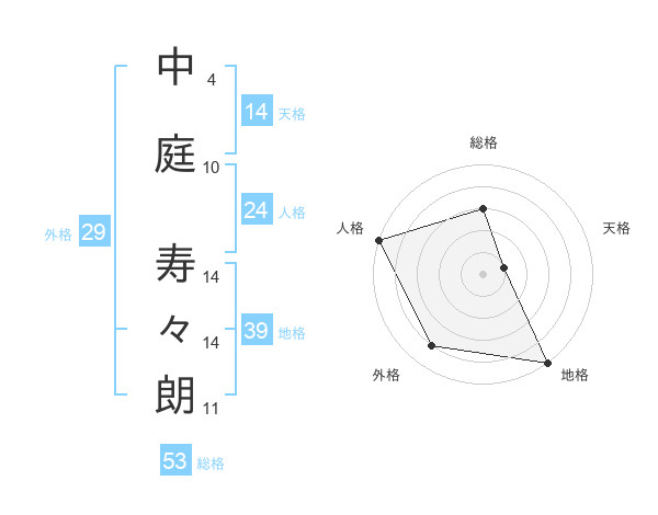 中庭 寿々朗さんを姓名の画数から五運を鑑定