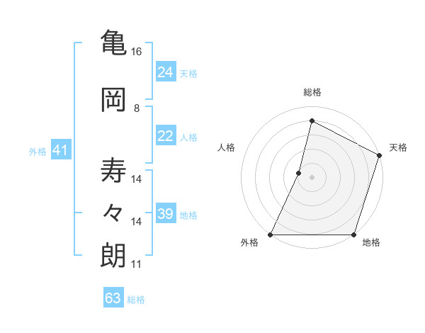 亀岡 寿々朗さんの総格は63画の4点!