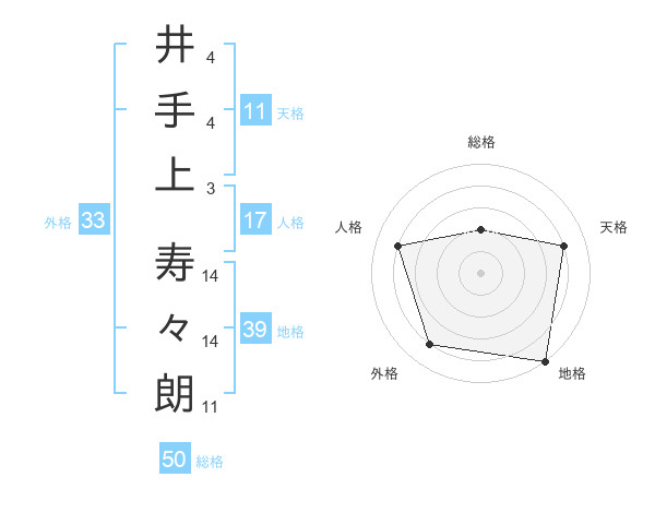 井手上 寿々朗さんの総格は50画の2点!