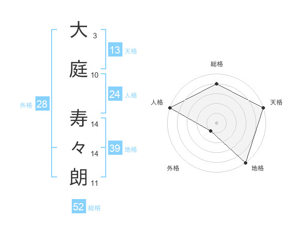 大庭 寿々朗さんの総格は52画の4点!
