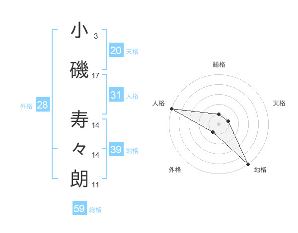 小磯 寿々朗さんの総格は59画の1点!