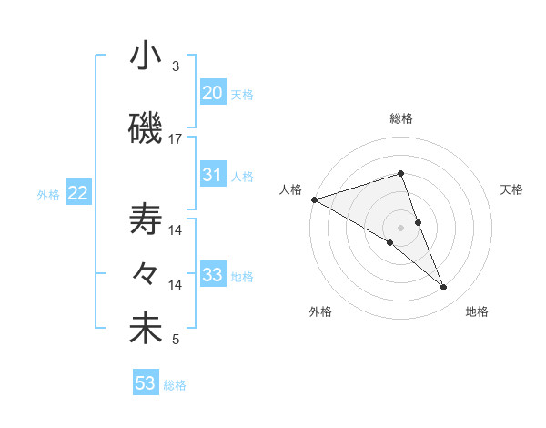小磯 寿々未さんを姓名の画数から五運を鑑定