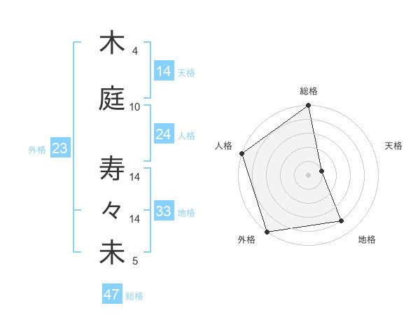木庭 寿々未さんを姓名の画数から五運を鑑定