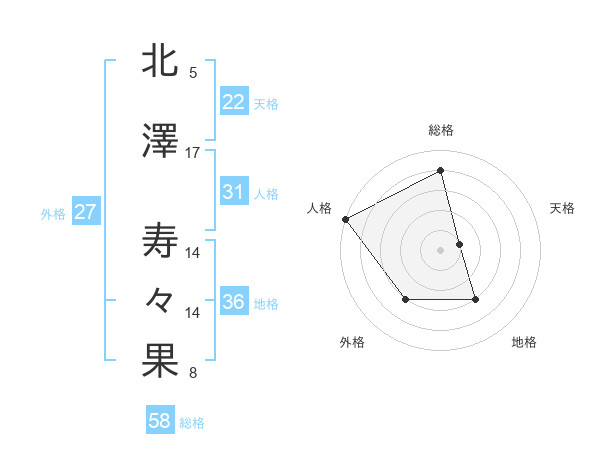 北澤 寿々果さんを姓名の画数から五運を鑑定