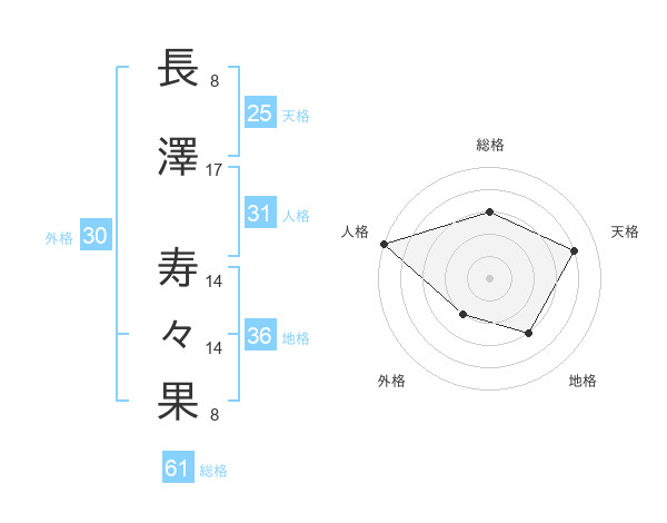 長澤 寿々果さんの総格は61画の3点!