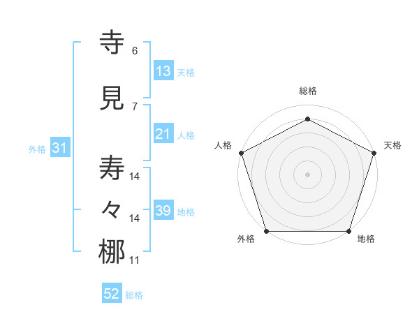 寺見 寿々梛さんの外格は31画の5点!
