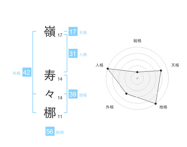 嶺 寿々梛さんを姓名の画数から五運を鑑定
