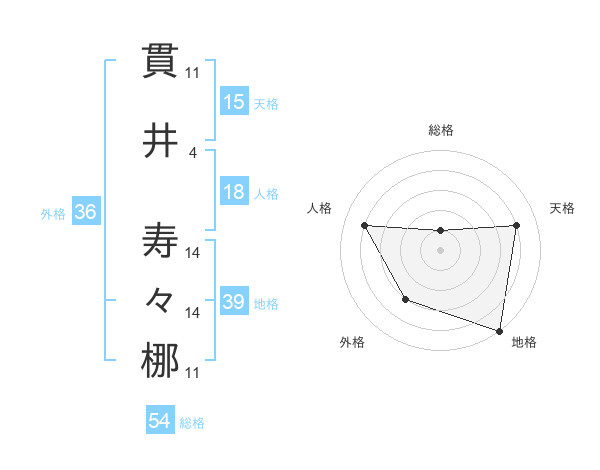 貫井 寿々梛さんの天格は15画の4点!