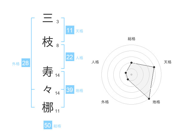 三枝 寿々梛さんを姓名の画数から五運を鑑定