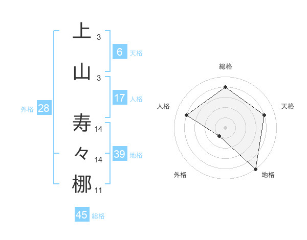 上山 寿々梛さんを姓名の画数から五運を鑑定