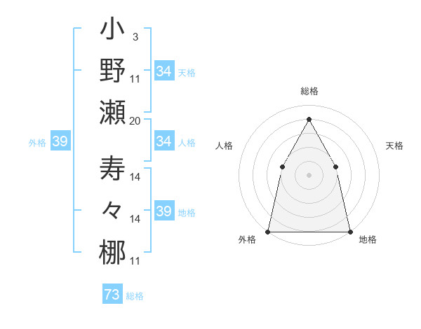 小野瀬 寿々梛さんを姓名の画数から五運を鑑定