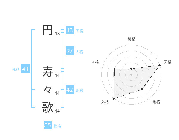 円 寿々歌さんの総格は55画の1点!