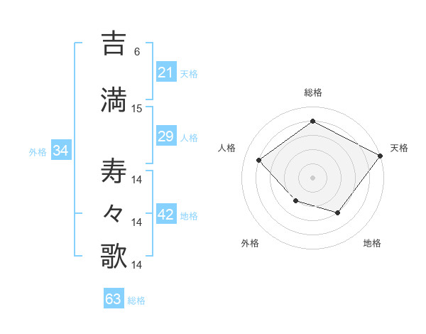 吉満 寿々歌さんの天格は21画の5点!
