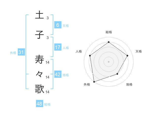 土子 寿々歌さんを姓名の画数から五運を鑑定