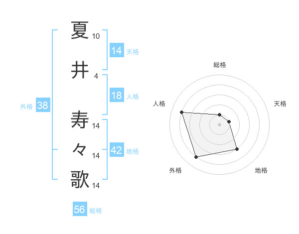 夏井 寿々歌さんを姓名の画数から五運を鑑定