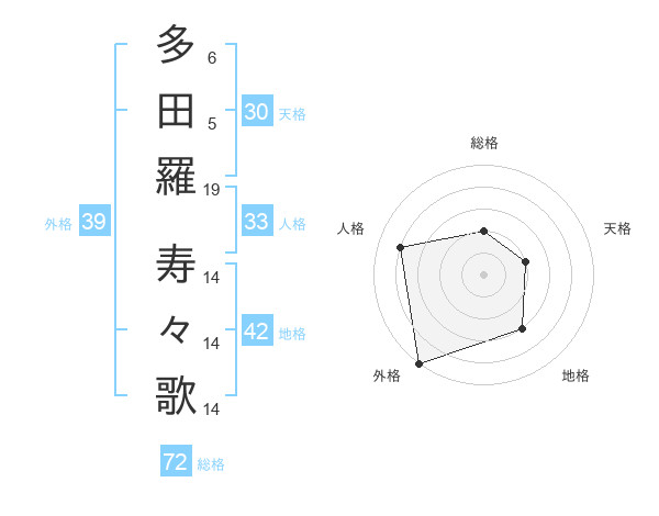 多田羅 寿々歌さんを姓名の画数から五運を鑑定