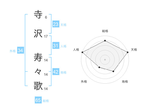 寺沢 寿々歌さんを姓名の画数から五運を鑑定