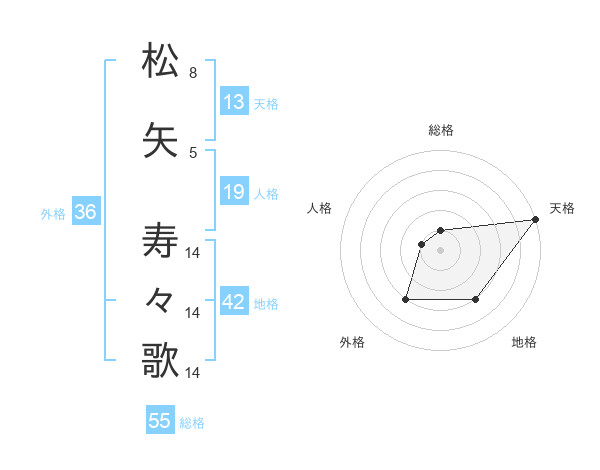 松矢 寿々歌さんの天格は13画の5点!