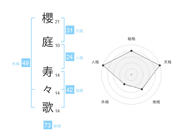 櫻庭 寿々歌さんの総格は73画の4点!