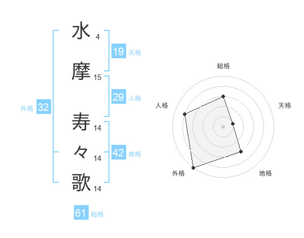 水摩 寿々歌さんの総格は61画の3点!