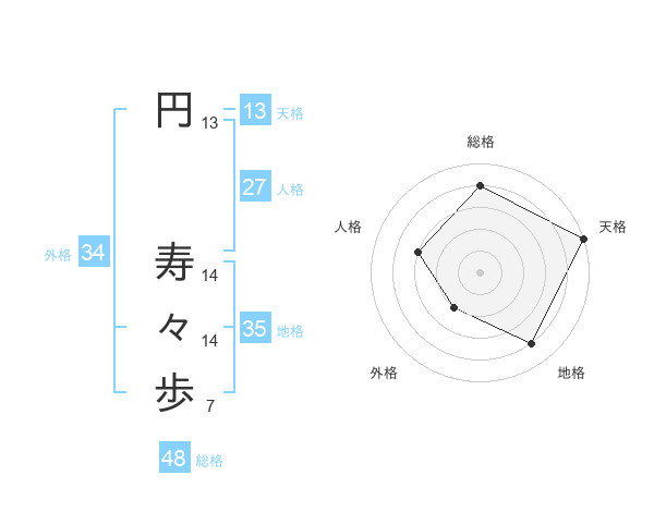 円 寿々歩さんの天格は13画の5点!