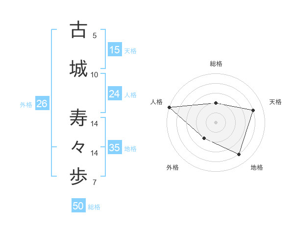 古城 寿々歩さんを姓名の画数から五運を鑑定