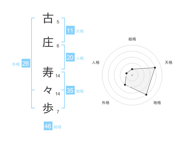 古庄 寿々歩さんの天格は11画の4点!