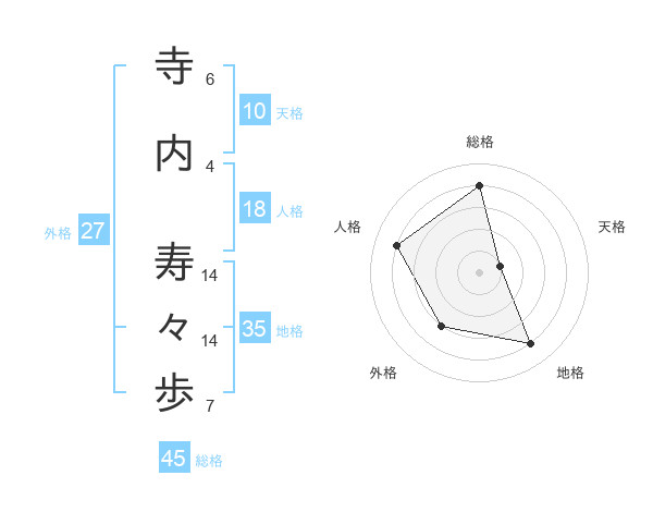 寺内 寿々歩さんの総格は45画の4点!