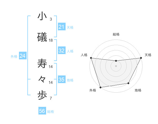 小礒 寿々歩さんの天格は21画の5点!