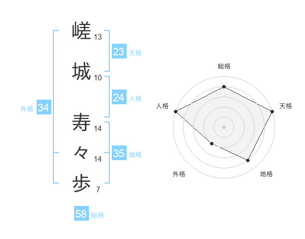 嵯城 寿々歩さんを姓名の画数から五運を鑑定
