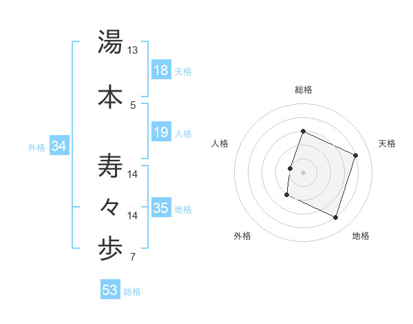 湯本 寿々歩さんの総格は53画の3点!
