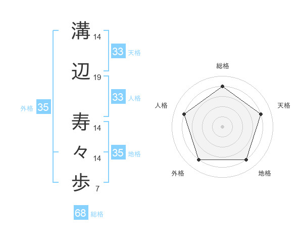 溝辺 寿々歩さんの総格は68画の4点!