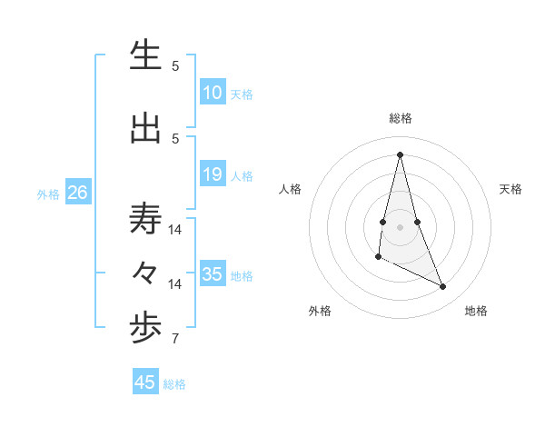 生出 寿々歩さんの総格は45画の4点!
