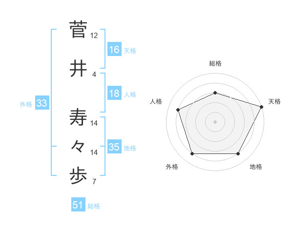 菅井 寿々歩さんの総格は51画の3点!