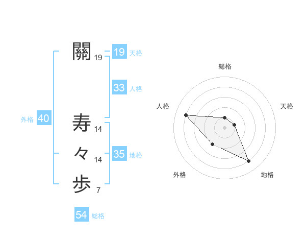 關 寿々歩さんの総格は54画の1点!