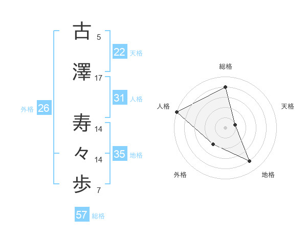 古澤 寿々歩さんを姓名の画数から五運を鑑定