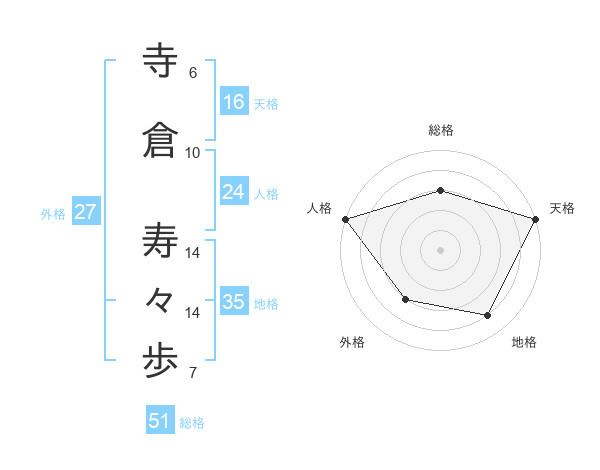 寺倉 寿々歩さんを姓名の画数から五運を鑑定