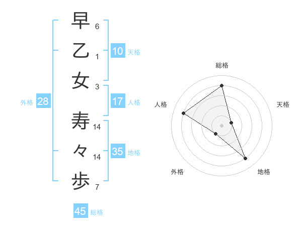 早乙女 寿々歩さんを姓名の画数から五運を鑑定