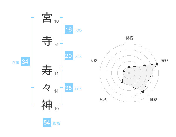宮寺 寿々神さんの天格は16画の5点!