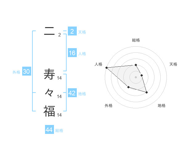 二 寿々福さんの総格は44画の2点!
