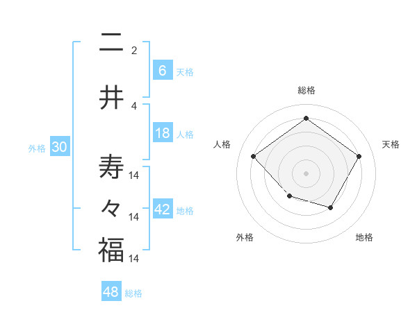 二井 寿々福さんを姓名の画数から五運を鑑定